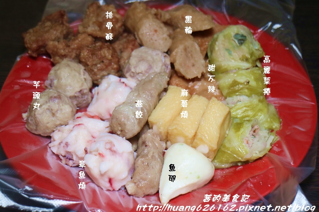 我今天分別點了排骨酥、黑輪、甜不辣、高麗菜捲、芋頭丸、章魚燒、燕餃、魚卵、麻糬燒
