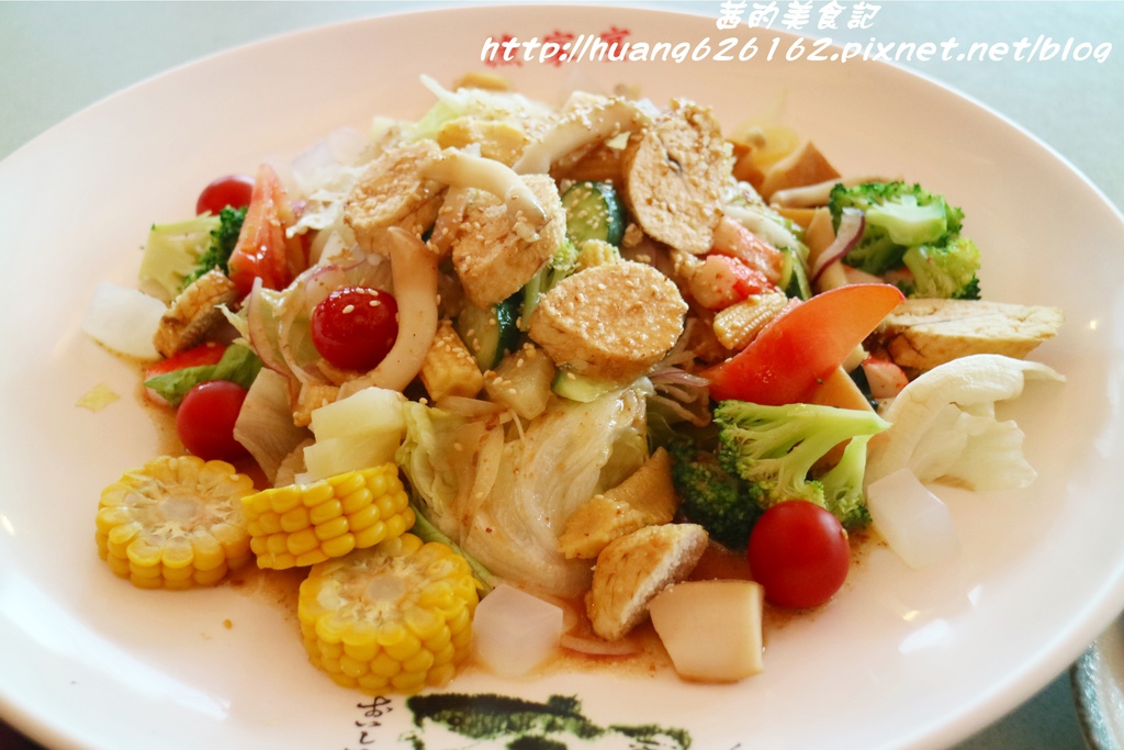 蘆筍干貝海鮮和風其實我沒看到干貝跟蘆筍,我在想應該干貝換成魚卵,魚卵吃起來好乾....吃一口真的粉不優,還是生菜吃起來比較清爽美味~