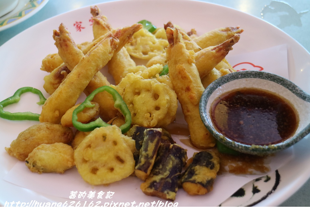 原本看到日式炸蝦我還蠻開心的,但看到蝦子裹著一層厚重的粉,讓我有點哭笑不得,咬一口外層麵衣好像在吃炸熱狗 粉超厚一點酥脆感都沒有,我倒覺得蓮藕好吃多了~