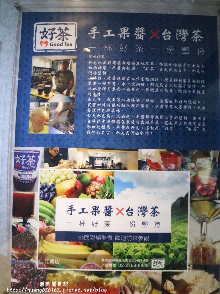 店門口有簡單介紹關於好茶的由來,選用坪林水源保護區的在地茶葉,搭配現場熬煮完全無添加的糖漿、果醬與粉圓,一杯好茶 一份堅持這也是好茶初衷
