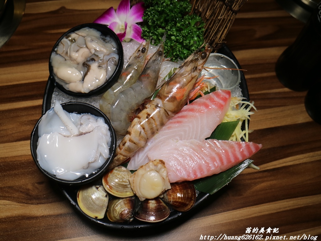 海鮮的部分,每一樣食材都吃的到鮮甜味,軟絲肉質Q彈有嚼勁、雕魚片軟嫩、鮮貝類口感鮮甜