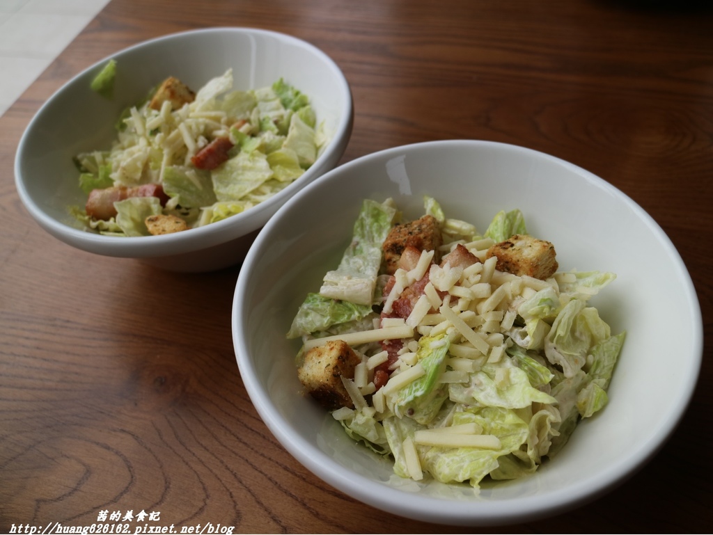 凱薩沙拉超大一份內含:蘿蔓、帕瑪森起士、培根碎、麵包丁、凱撒醬