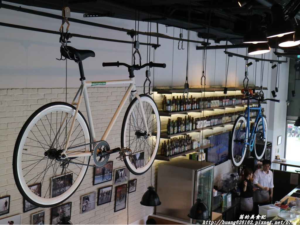 店內座位大都是二人與六~八人居多,美式餐廳最大特色就是餐廳都會懸掛大液晶電視轉播運動賽事,牆面上也掛著一些單車照片,據說老闆很愛騎單車便將自己興趣喜好照片融入餐廳中,挑高的用餐空間讓人覺得非常舒適且無壓迫感