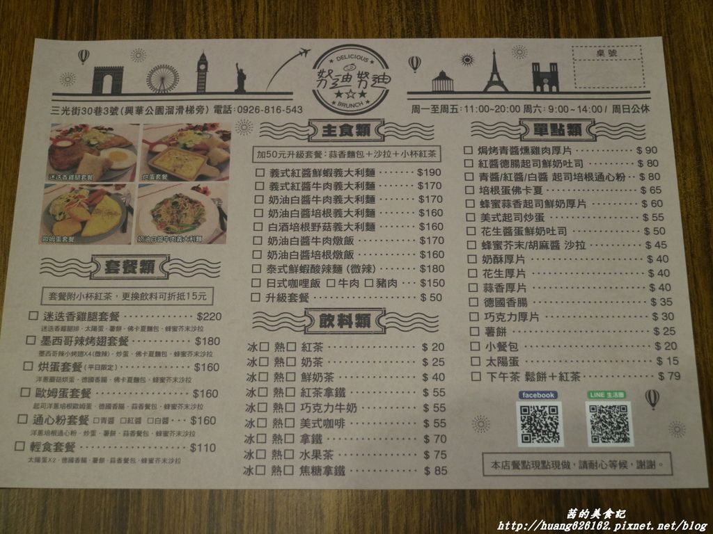 菜單 餐點有早午餐套餐、義大利麵、燉飯、點心、飲品