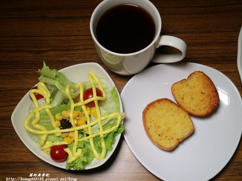 說真的只要$50元就能升級超澎湃套餐:蒜香麵包、沙拉、小杯紅茶